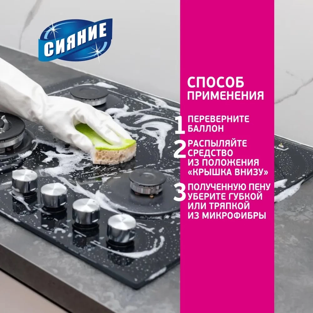 Agitați cutia înainte de utilizare. Aplicați prin răsturnarea cutiei cu susul în jos. Întindeți pe suprafață, lăsați să stea timp de 15-20 de minute, ștergeți cu un burete și spălați cu apă. Citiți cu atenție instrucțiunile de întreținere pentru aragazul și cuptorul dumneavoastră! Purtați mănuși la manipulare.