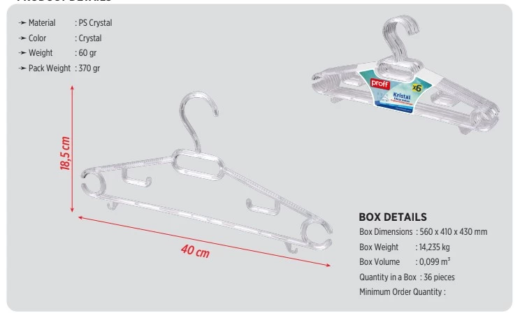 Proff Cuier pentru haine Crystal (6 bucăți)