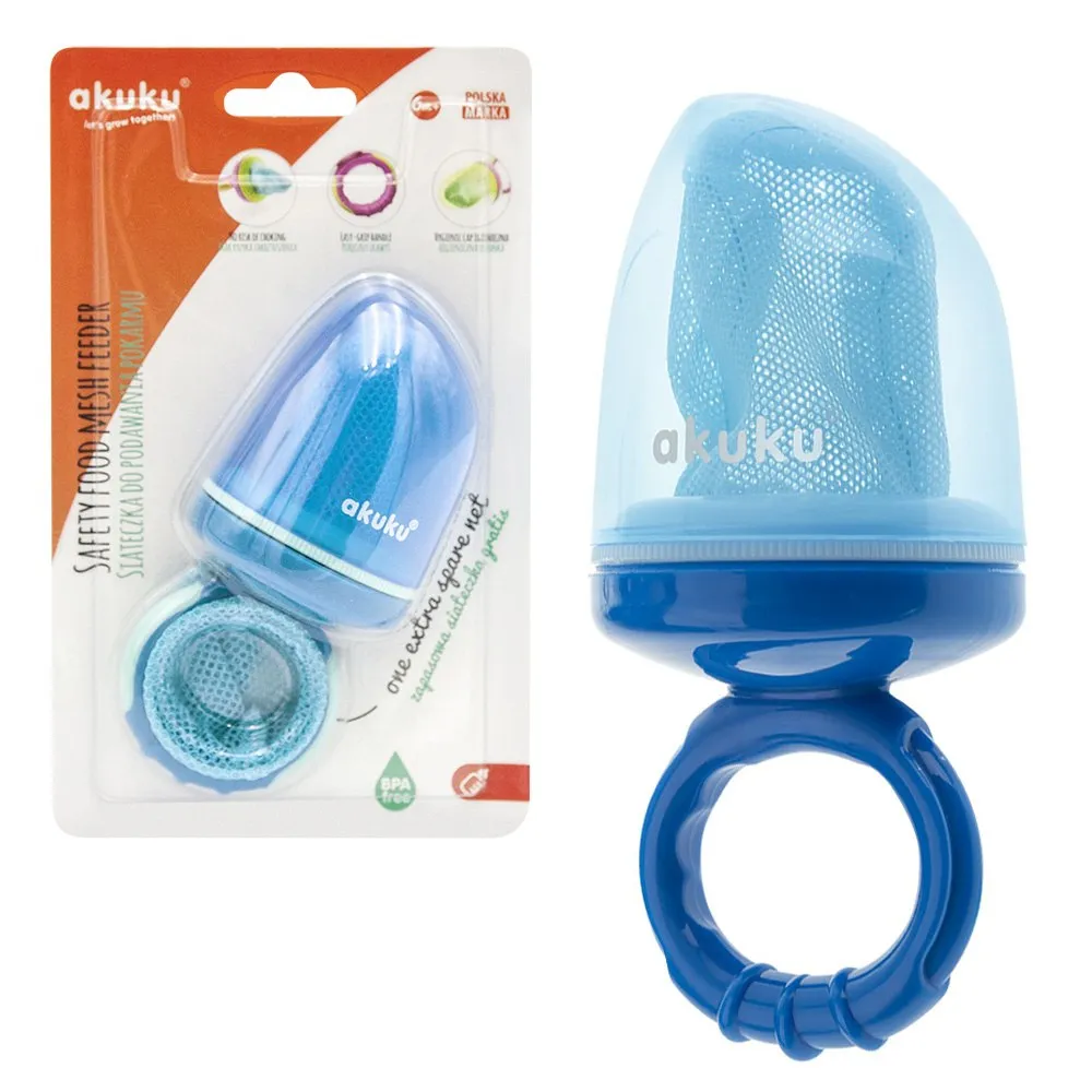 Alimentatorul Akuku Fresh Food Feeder îi permite micuțului dvs. să se bucure de gustări gustoase fără să vă deranjeze. Cu un design simplu cu plasă, acest alimentator practic pentru dentiție le permite bebelușilor să mestece alimentele în siguranță. Pur și simplu puneți o bucată de fructe, legume sau chiar carne în punga cu plasă și închideți-o. Bebelușul dvs. poate mesteca, suge și gusta toate alimentele sănătoase, din care ies doar bucăți mici, ușor de digerat, reducând astfel riscul de sufocare. Este, de asemenea, o alternativă sensibilă la o jucărie de dentiție. Hrănitorul Fresh Food Feeder are un mâner colorat și confortabil pentru ca bebelușul să se poată ține de el, ceea ce face ca acesta să fie primul său pas real spre independența față de alimentație.