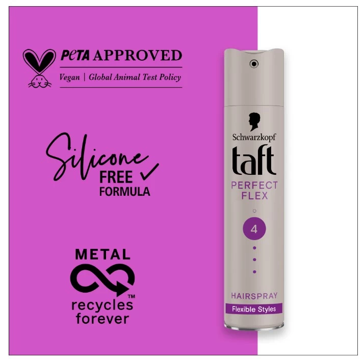 Fixativele Taft folosesc formule vegane* si sunt aprobate de PETA**. Formula este fara silicon.