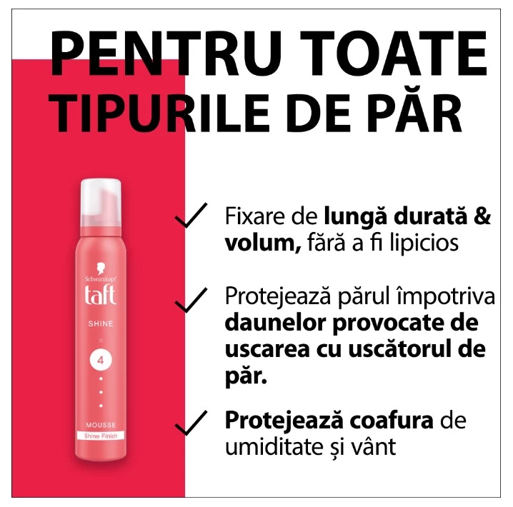Taft Shine este o linie de produse de styling care oferă părului tău o strălucire uimitoare și o fixare puternică și de lungă durată pe tot parcursul zilei. Produsele din această linie îți fac părul frumos și strălucitor, conferindu-i o strălucire naturală.