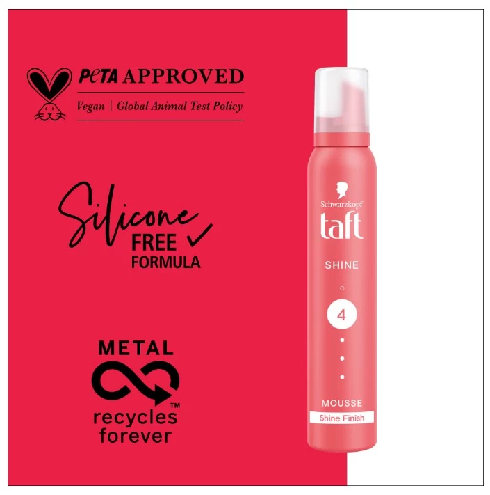 Spuma de păr Taft Shine are o formulă vegană. Este o alegere potrivită pentru vegani și vegetarieni.