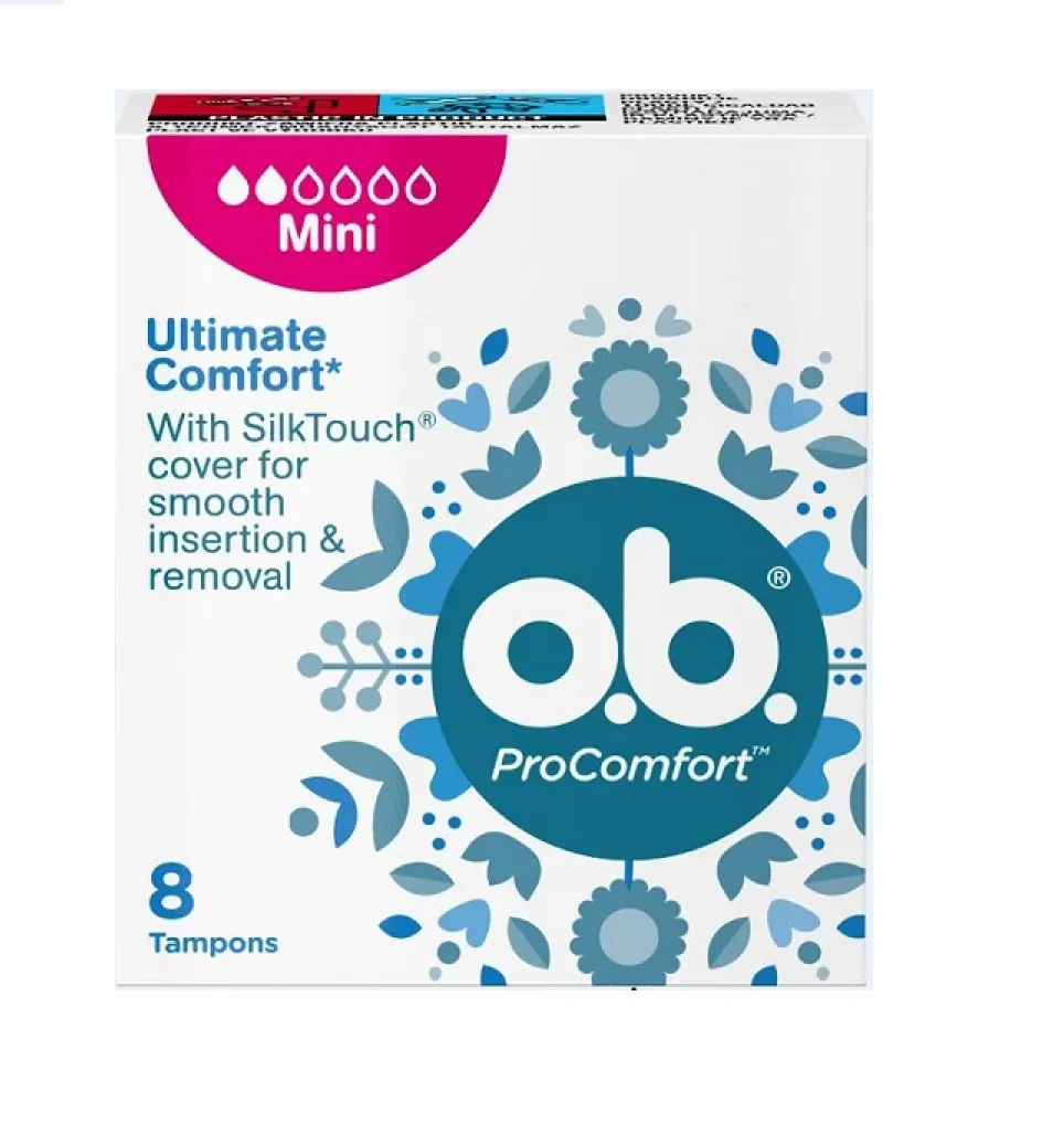 o.b. ProComfort oferă o inserție ușoară și o protecție fiabilă datorită stratului său unic** SilkTouch, a canelurilor speciale și a noii tehnologii, pentru o suprafață a tamponului și mai netedă. O.b. ProComfort este ușor de utilizat în zilele cu scurgeri ușoare până la moderate și pentru cele care abia încep să folosească tampoane.