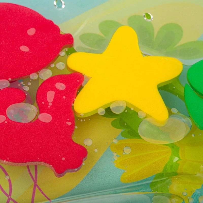 Datorită diferitelor culori ale covorașului și a animalelor care plutesc în interior, copilul se va familiariza cu noi culori și forme, îmbogățindu-și astfel rapid imaginația și concentrarea.
