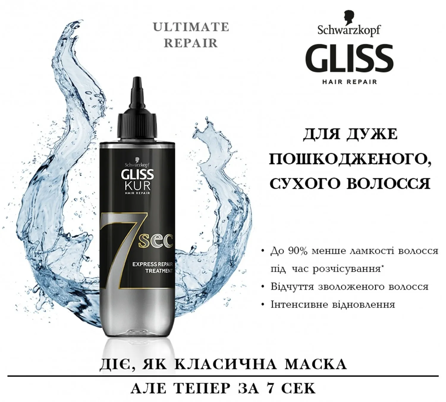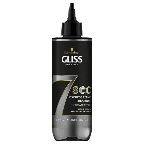 Gliss Ultimate Repair Express Mask 7 secunde pentru părul foarte deteriorat și uscat. Un produs revoluționar care acționează ca o mască clasică, dar în doar 7 secunde. Gliss Oil Nutritive Express Mask 7 Seconds se transformă dintr-un lichid într-o textură cremoasă delicată și conferă strălucire, restaurând părul fără nicio povară suplimentară.