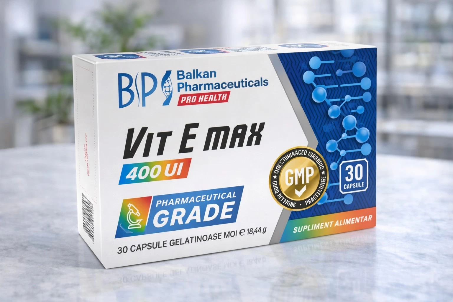 • Concentrație înaltă de Vitamina E (400 UI), în capsule moi liposolubile, cu Asimilare și Acțiune Rapidă cu efect puternic Antioxidant și Anti-îmbătrânire.