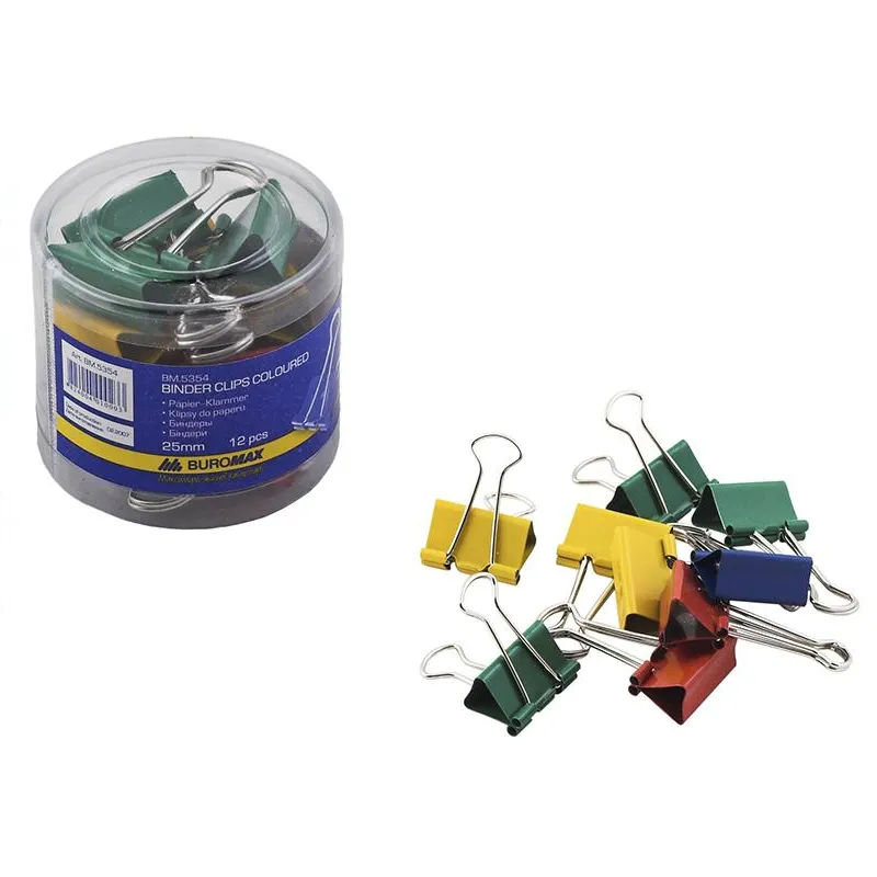 Зажим канцелярский цветной BUROMAX 25мм, ассорти (в уп 12шт)