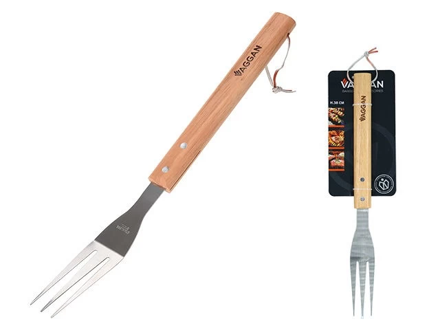 Деревянная ручка вилки обеспечивает удобный и надежный захват, позволяя легко обрабатывать продукты на гриле. Дерево придает деревенский и теплый вид, добавляя элемент красоты и традиций в процесс приготовления пищи.
