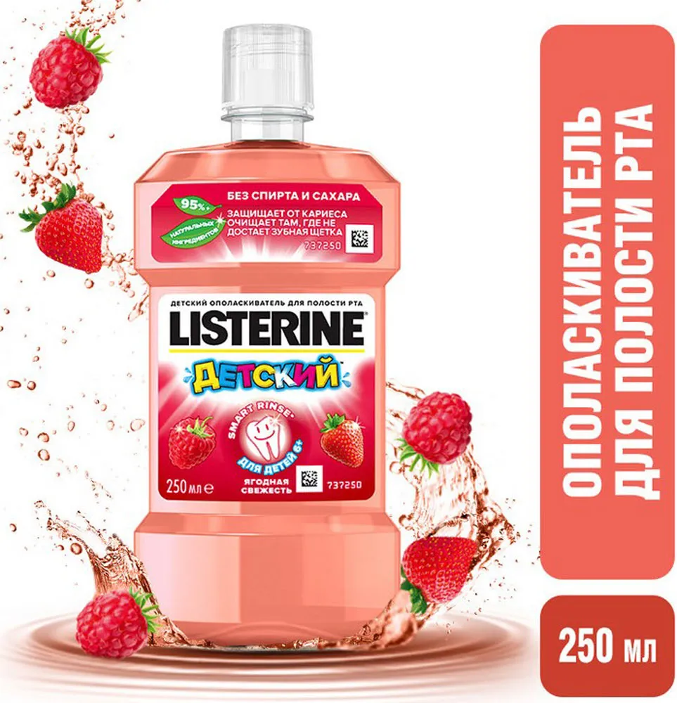 - Listerine Ополаскиватель для ротовой полости детский Smart Rinse 250 мл