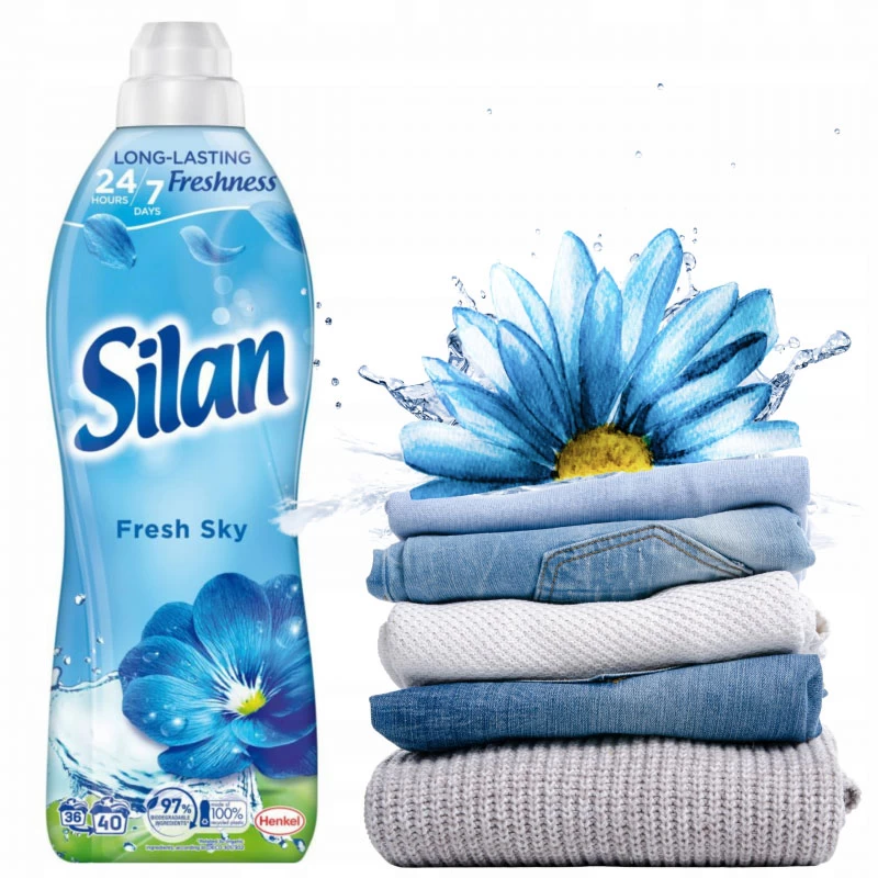 Вместе с Silan окунитесь в непревзойденное ощущение свежести в течение 24 часов до 7 дней благодаря уникальной улучшенной технологии. Silan Fresh Sky придает Вашей одежде долговременную свежесть в течение всего дня, даря необычайную мягкость и особый аромат, такой же как во время прогулки свежим солнечным утром. Наслаждайтесь ощущением деликатно-мягкого белья и насыщенного длительного аромата во время каждой стирки с Silan.