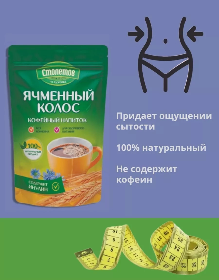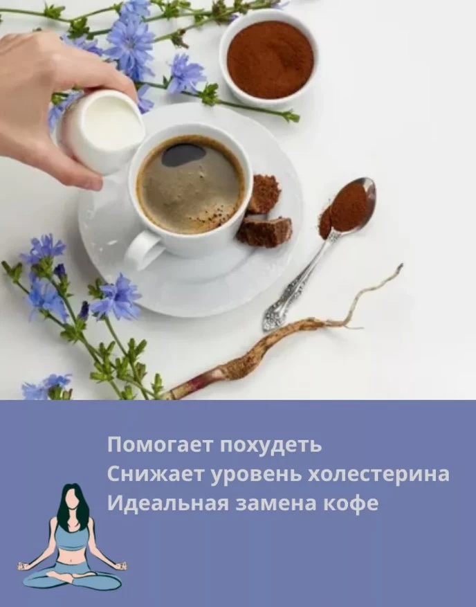 Подходит для похудения и помогает контролировать вес, всего одна чашка цикория притупляет чувство голода, снижает аппетит и нормализует уровень сахара в крови. Это низкокалорийный продукт и за счет этого является идеальным для похудения. Подходит для приготовления горячих напитков, можно добавить мёд, сахар, лимон или корицу по вкусу. Не отказывайте себе в любимом американо, капучино или латте, просто замените в нем кофе на цикорий. Не повышает артериальное давление!