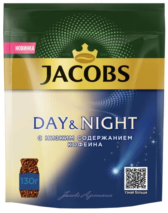 - Кофе растворимый Jacobs Day&Night с низким содержанием кофеина 130г