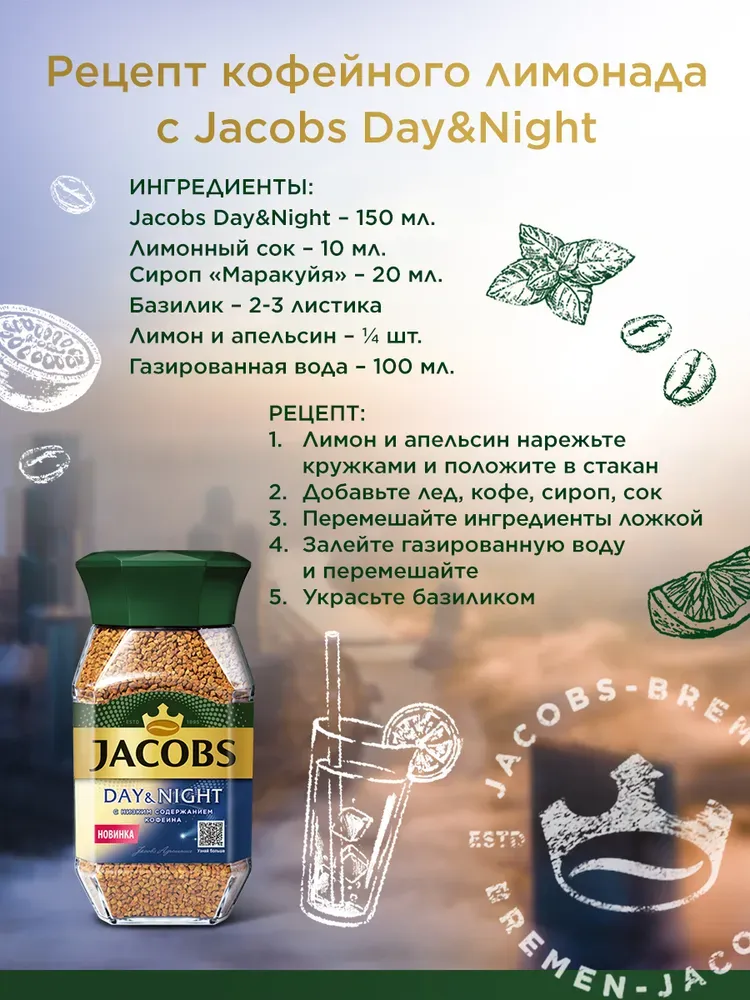 Jacobs Day&Night - растворимый кофе с низким содержанием кофеина, насыщенным ароматом и деликатным вкусом.