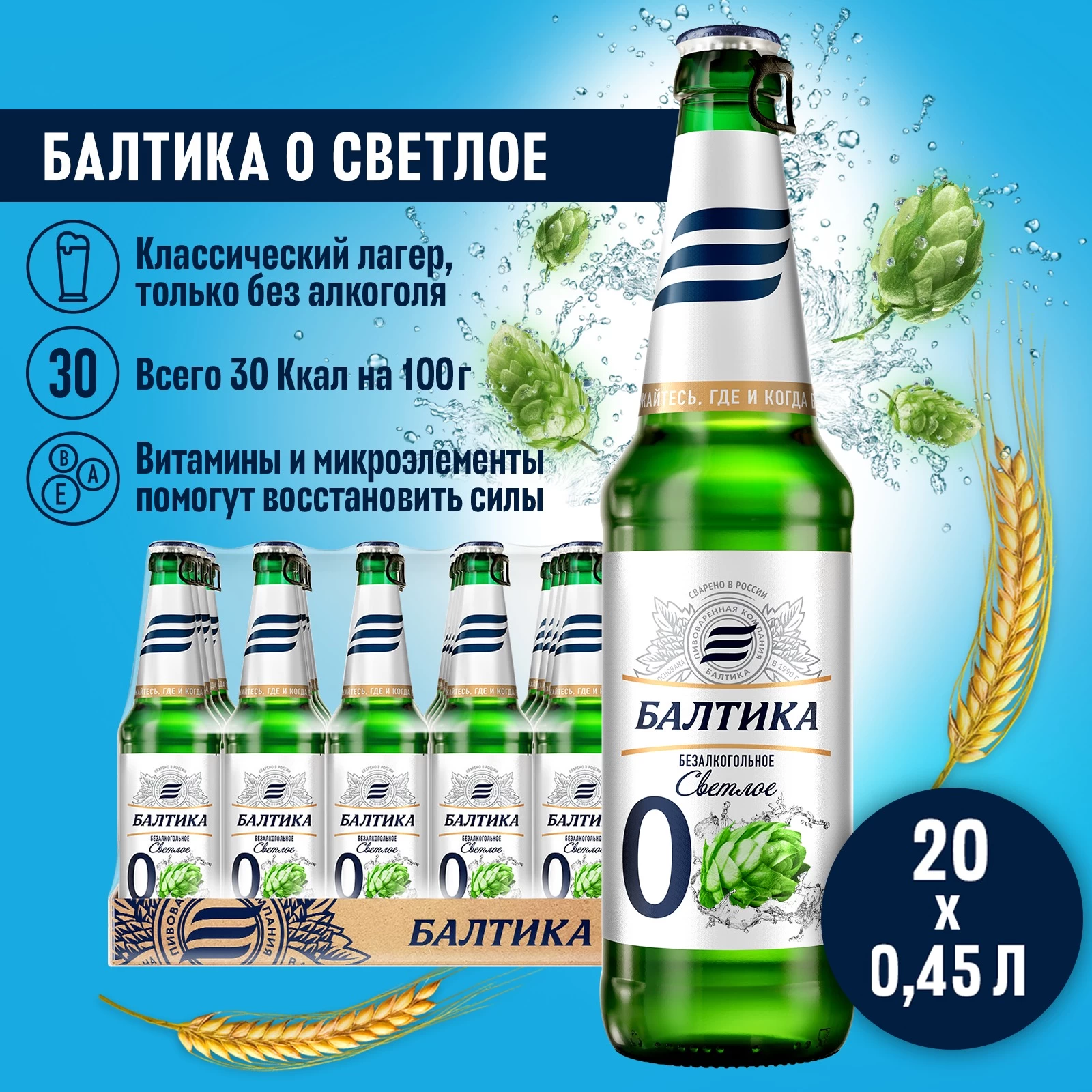 «Балтика 0 Светлое» производится в России из качественных ингредиентов. Срок хранения составляет 12 месяцев при температуре от 0°C до +30°C.
