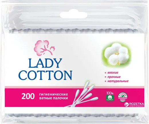 Палочки Lady Cotton с качественной и объемной намоткой, 100% хлопок без ворсинок и применения синтетических волокон.