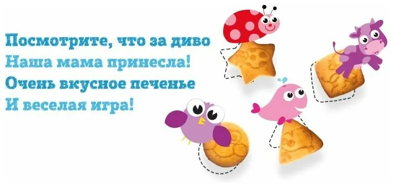 Печенье растворимое пшеничное c земляникой в форме четырех фигур в новой удобной порционной упаковке. Развивает самостоятельность малыша.