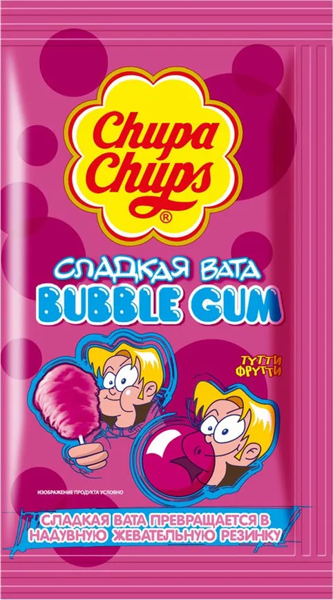 Необычный продукт, в котором сахарная вата является основой жевательной резинки длительного действия, станет сюрпризом для любителей сладкого. Chupa Chups Bubble Gum выглядит как небольшой пакетик, в котором компактно расположилась сахарная вата. Растаяв во рту, она не исчезает, а превращается во фруктовую жевательную резинку.