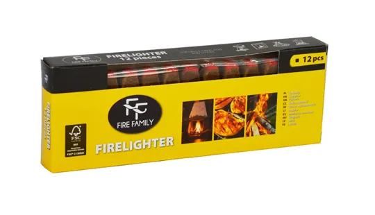 Набор из 12 зажигалок спичечного типа от Fire Family - необходимый предмет в вашем хозяйстве, он очень пригодится при приготовлении гриля на зеленой траве. Этот продукт рекомендуется для легкого разжигания огня на барбекю, каминах, печах или твердотопливных электростанциях. Эти зажигалки зажигаются без необходимости использования другого источника огня, так как они относятся к спичечному типу. Они изготовлены из древесного состава, не выделяют дыма и неприятного запаха. Продаются в коробках по 12 штук. Размеры коробки: длина 19,5 см, ширина 7,9 см, толщина 2,4 см, вес 0,115 кг.