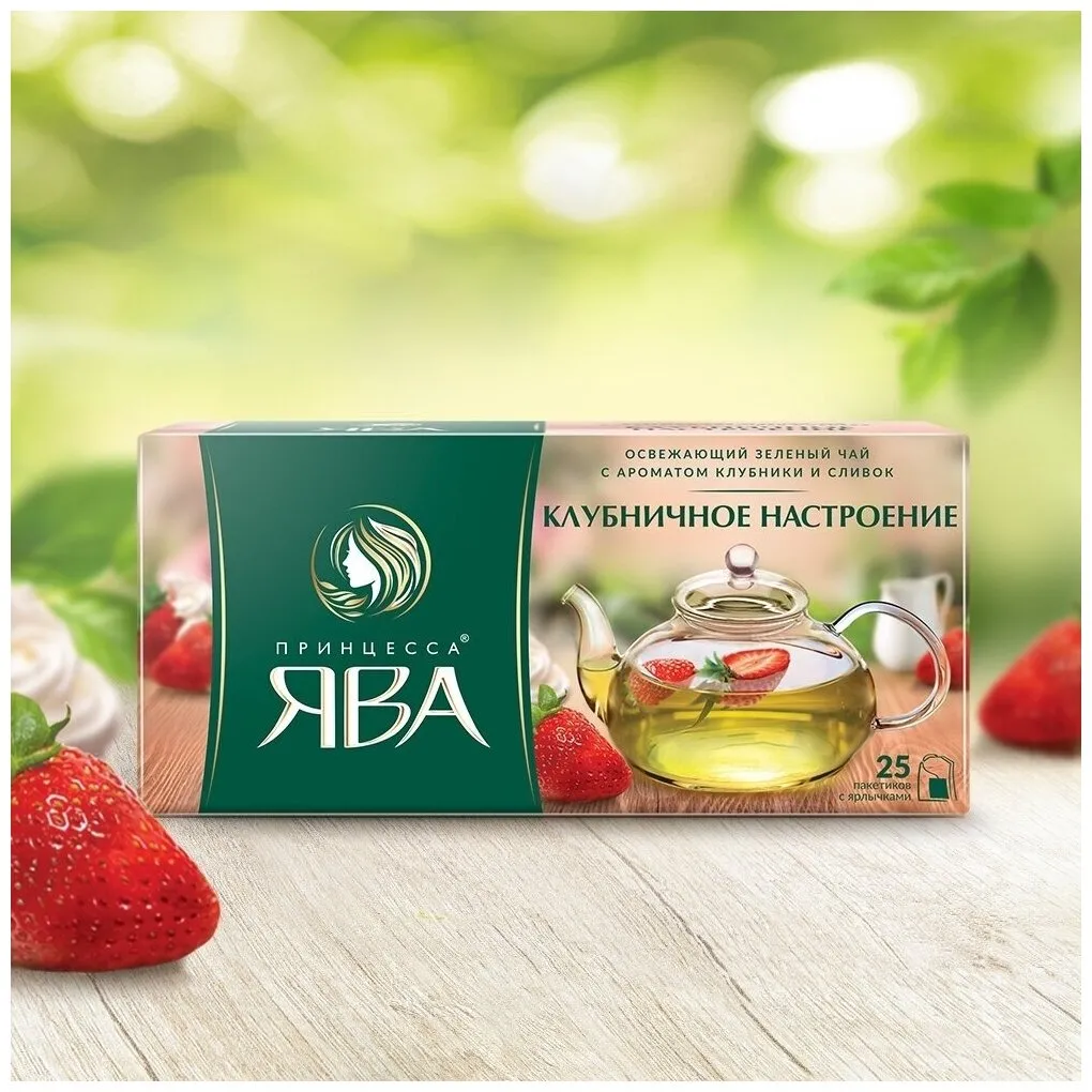 Чай зеленый Принцесса Ява Клубничное настроение в пакетиках, 25 пак