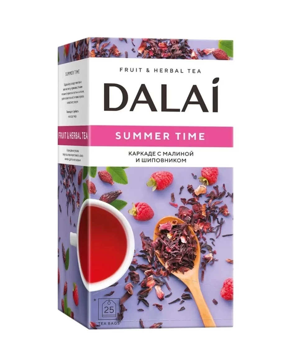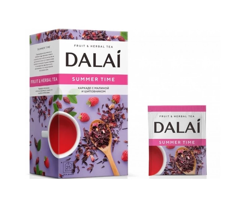 Чайный напиток Dalai Summer Time - это бодрящий вкус каркаде с оттенками ягодных нот малины на шиповника и со сладостью послевкусия.