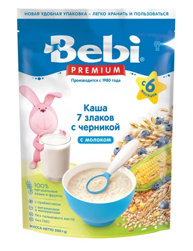 Каша молочная 7 злаков Bebi Premium с черникой (6+ мес.), 200 г