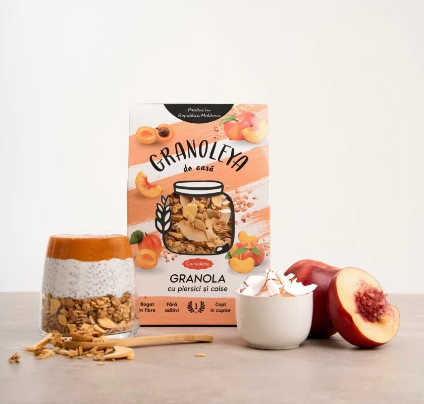 Смесь из овсяных хлопьев, арахиса, меда и сублимированных фруктов, запеченная в духовке.