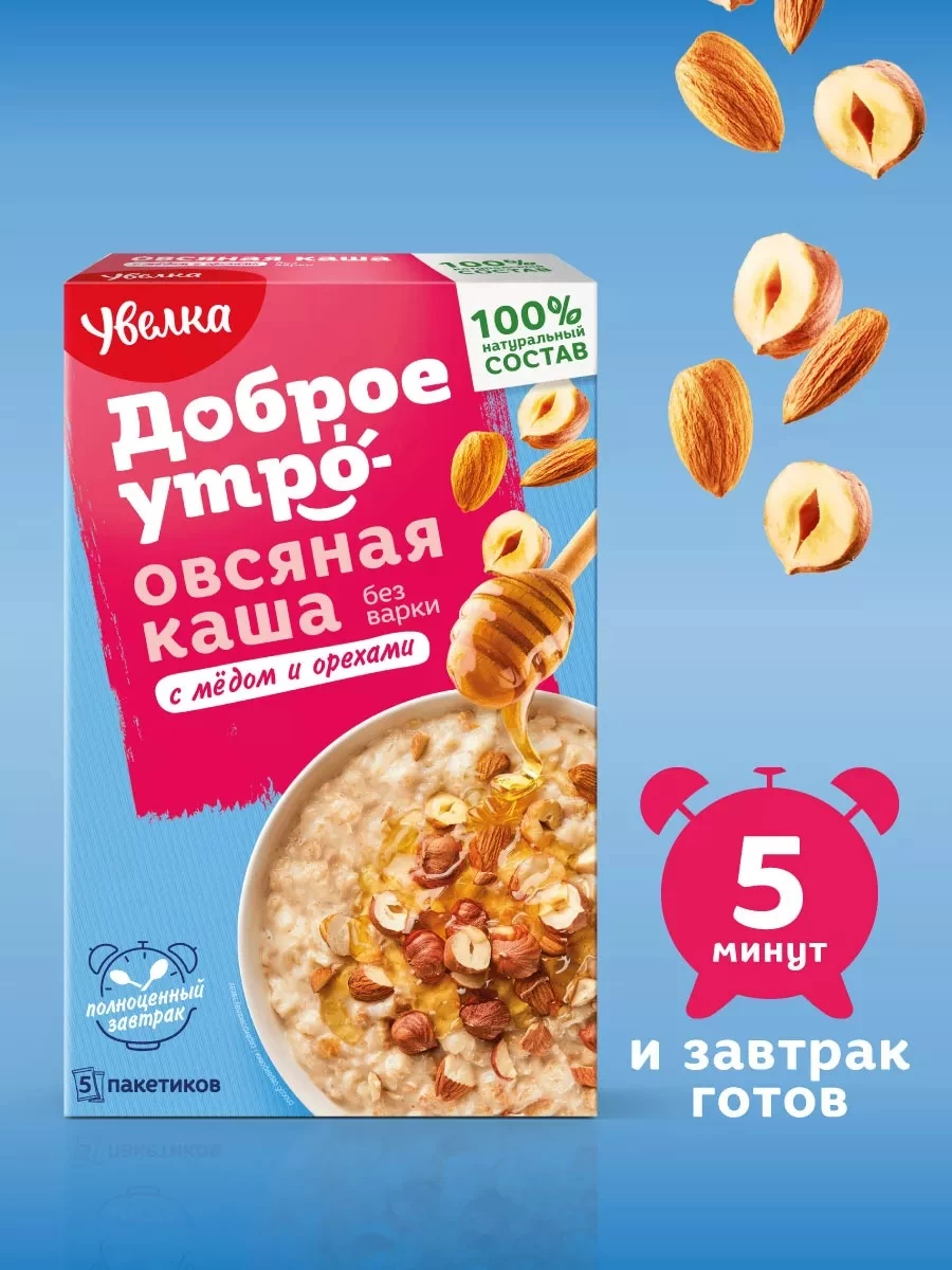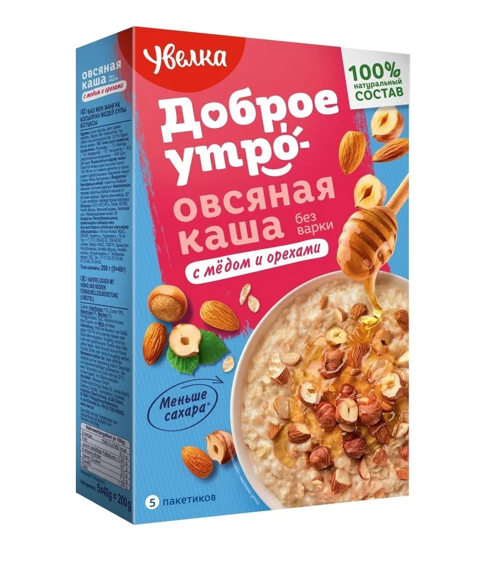 Каша овсяная быстрого приготовления с медом и орехами Увелка 200 гр