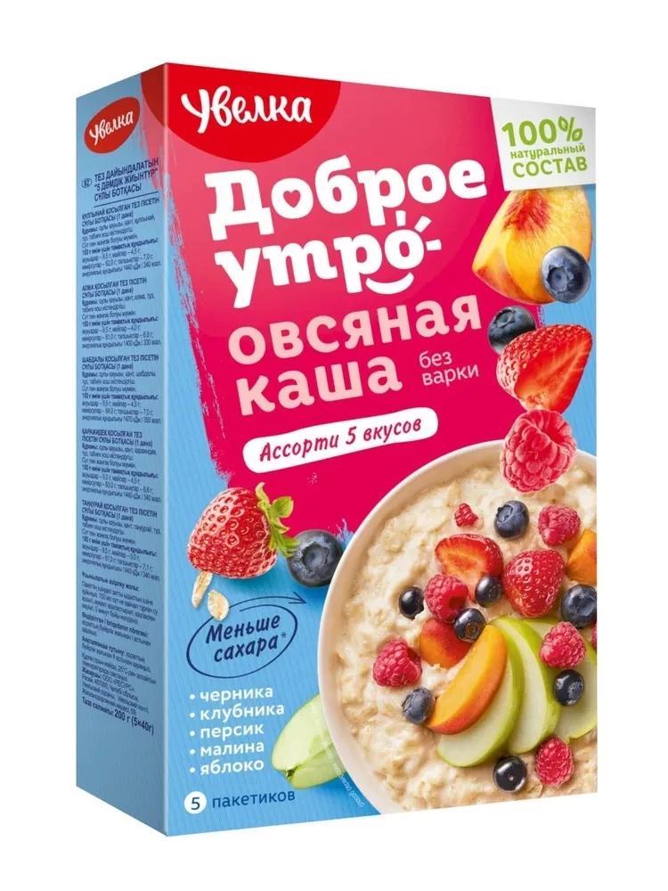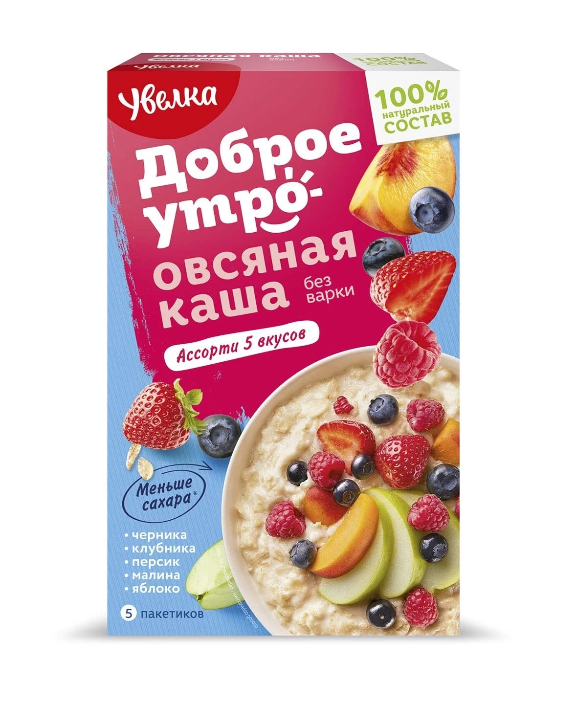 Увелка Ассорти из пяти вкусов овсяная каша быстрого приготовления, 5 пакетиков по 40 г