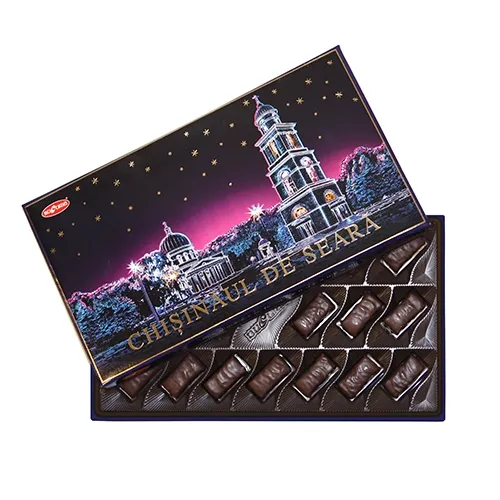 Утолите свои чувства с "Вечерней Кишиной Радостью". Эти исключительные конфеты удивляют и восхищают гармоничным сочетанием сушеных слив с характерным терпко-сладким вкусом и изысканной шоколадной глазури. Каждая конфета - это путешествие в сущность кишиневских вечеров, где вкусы, текстуры и воспоминания переплетаются в незабываемом вкусовом танце. Chisinaul de Seara просто и красноречиво отдает дань уважения как традициям, так и современности, делая каждый момент дегустации по-настоящему особенным. Наслаждайтесь каждым вечером, как в Кишиневе!