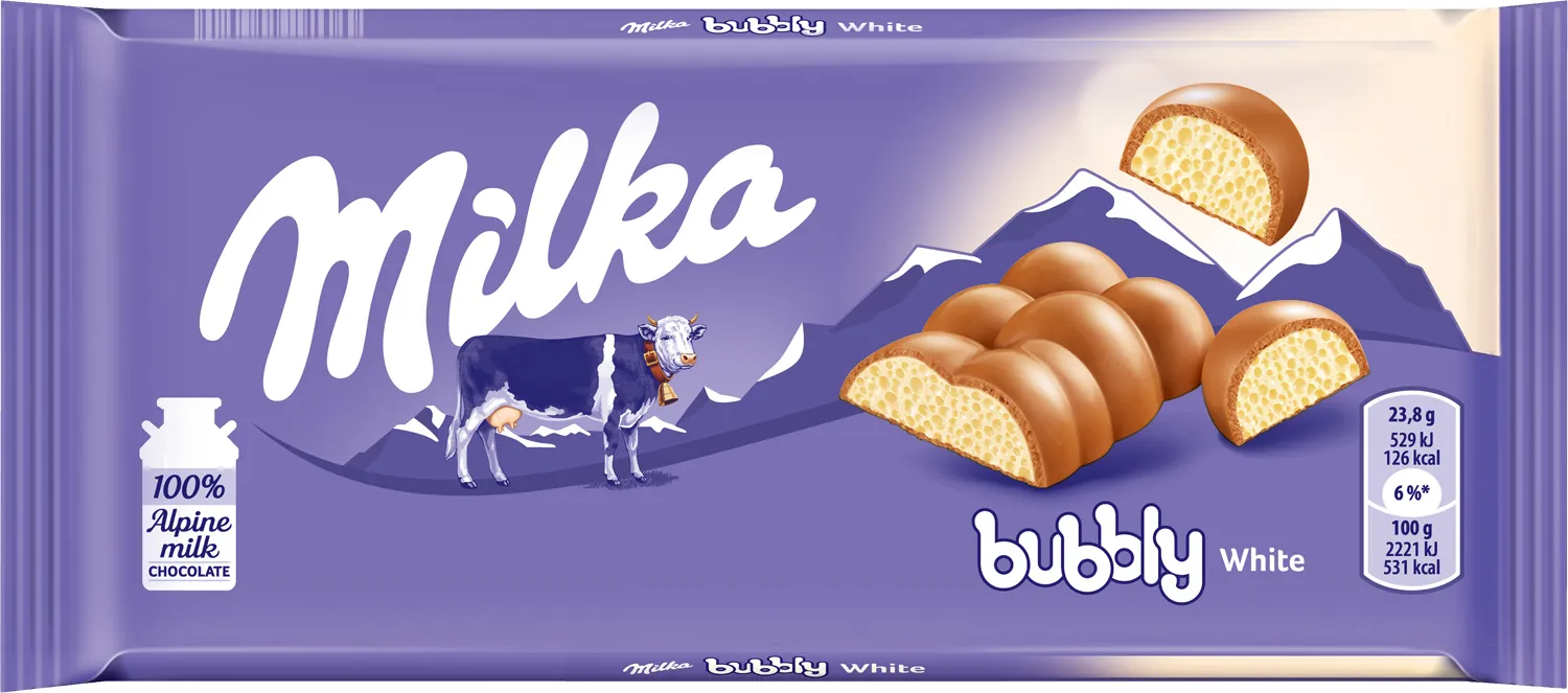 Шоколад молочный Milka Bubbly наполненный белым пористым шоколадом 95 г