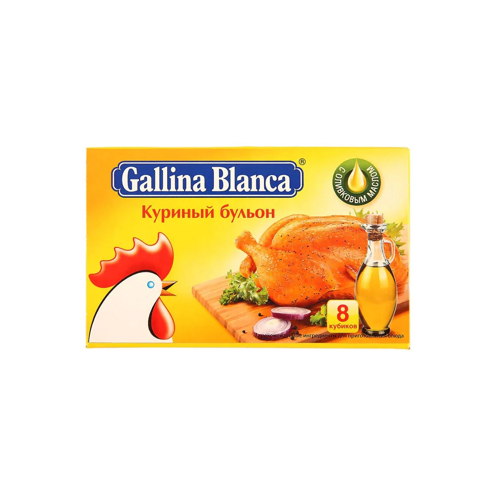 Используйте кубик Gallina Blanca не только при приготовлении бульона, но и гарнира, чтобы сделать его привлекательным и золотистым. Попробуйте кубик Gallina Blanca для картошки, риса, макарон и даже пельменей. Также его можно использовать при приготовлении вторых блюд, предварительно раскрошив. Оливковое масло в составе. И теперь в каждом кубике еще больше овощей и зелени! Без консервантов и ГМО.