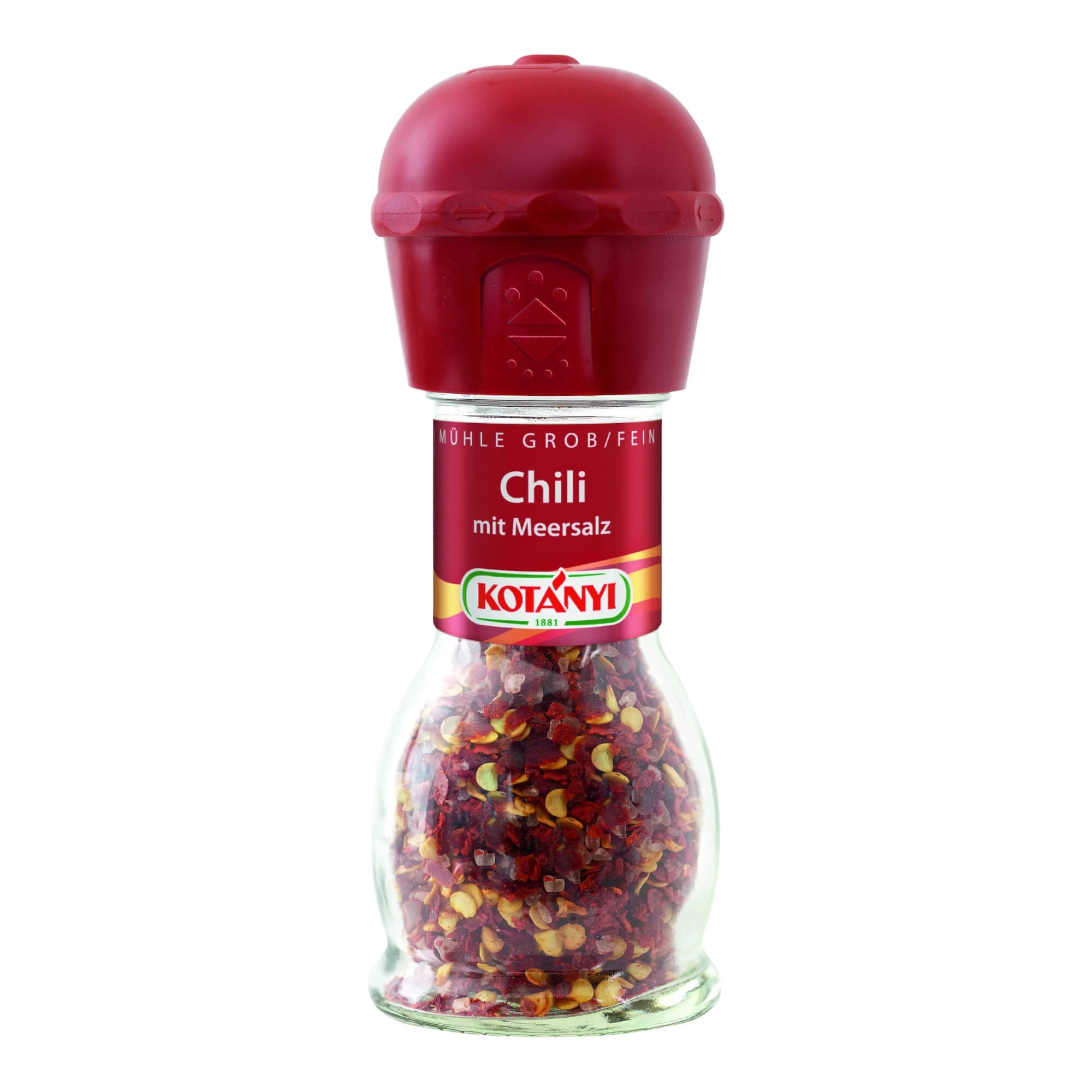 Мельницы Kotanyi – это специи свежего помола в одно мгновение! Выберите нужную степень помола и насладитесь многообразием вкусов. Перец чили является основой хорошей кухни благодаря своему интенсивному фруктовому и пряному вкусу. Он придает всем блюдам пикантный вкус и огненную остроту.