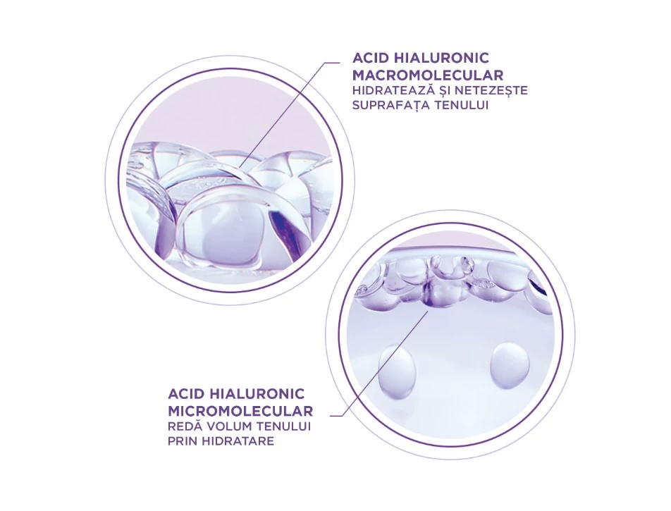 Микрогиалуроновая кислота, которая проникает в эпидермис и помогает восстановить объем кожи.