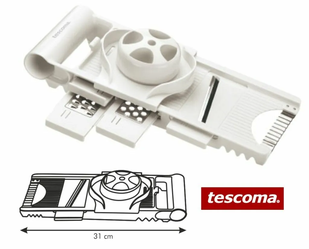 Многоцелевой гриль Tescoma отлично подходит для легкого приготовления на гриле, нарезки и шинковки.