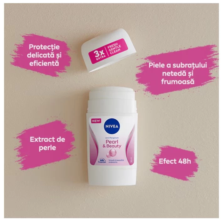 Благодаря новой запатентованной эмульсионной технологии антиперспирант NIVEA Pearl & Beauty Antiperspirant Stick обеспечивает надежную 48-часовую защиту и легкость нанесения. Наслаждайтесь необыкновенной свежестью кожи без ощущения липкости.