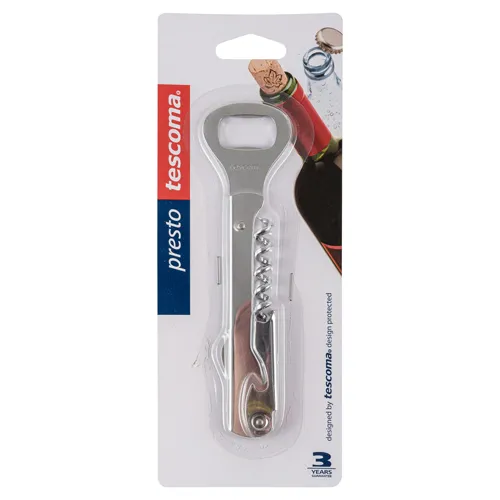 Открывашка официанта Presto предназначена для открывания пробок и бутылок с металлической крышкой. Кроме того, она оснащена лезвием для легкого удаления фольги с винных бутылок.