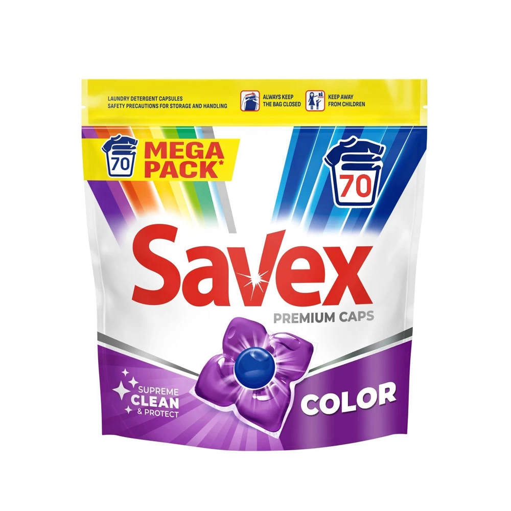 Новый Savex Super Caps с великолепной новой формулой. Активатором яркости и усилителем активных компонентов. Имеет оптический отбеливатель, который делает белый цвет заметно белее, а другие цвета ярче благодаря специальному полимерному активатору фиолетового цвета.