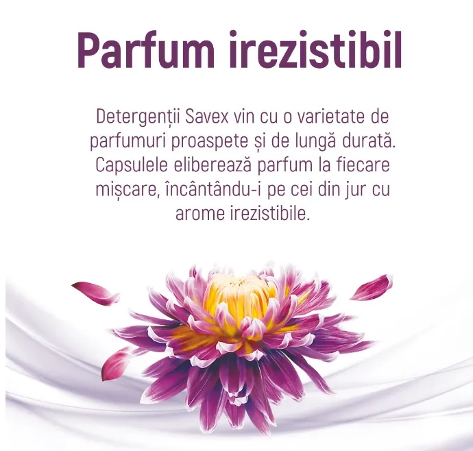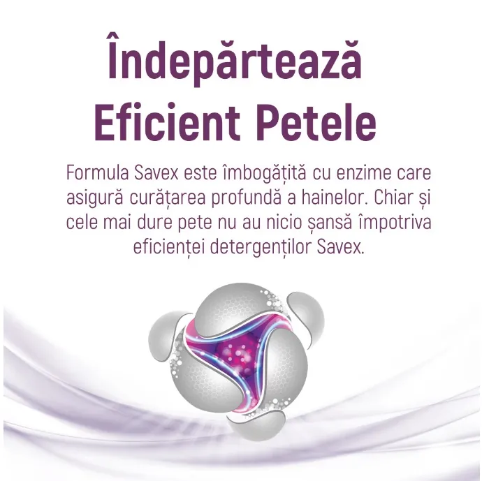 Концентрированный гель SAVEX обеспечивает глубокую очистку тканей, оставляя их чистыми и ароматными с первой стирки.