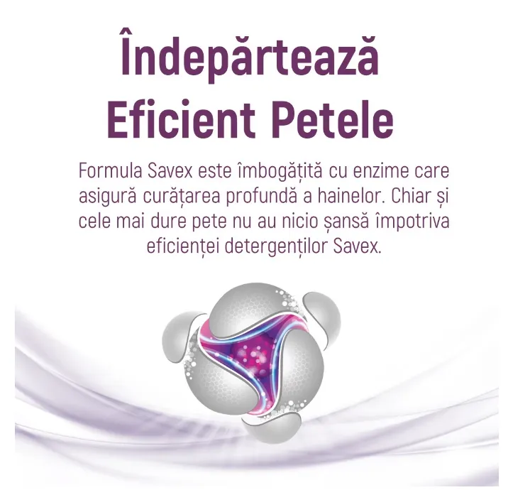Концентрированный гель SAVEX обеспечивает глубокую очистку тканей, оставляя их чистыми и ароматными с первой стирки.