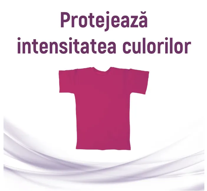 Специальный ингредиент для ухода за тканями уменьшает электризацию и шелушение, сохраняя одежду гладкой, а цвета - яркими;