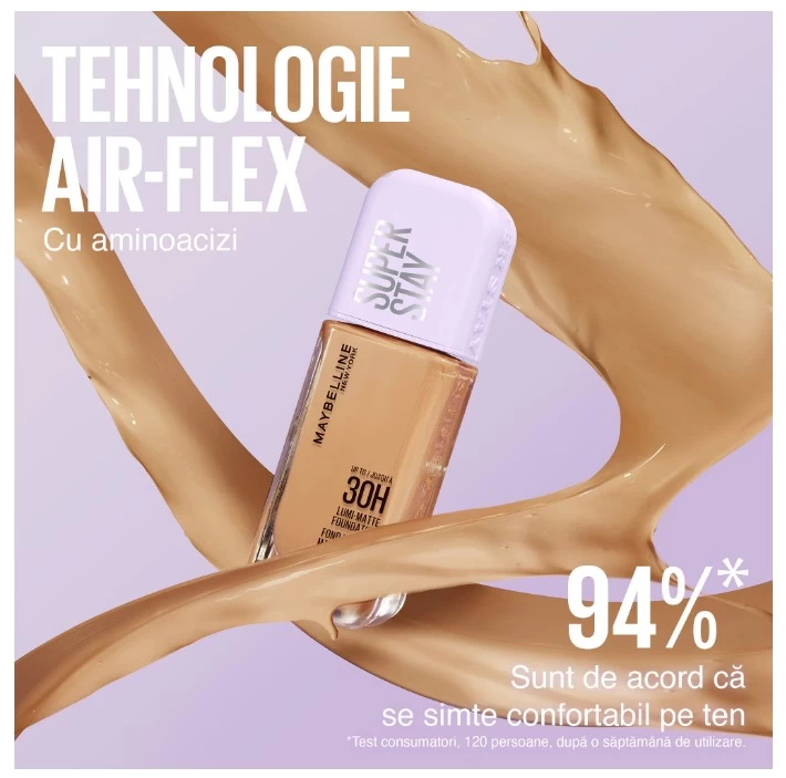 Ультралегкий тональный крем с технологией Air-Flex, сочетающий в себе воздушные пигменты, гибкую пленку и аминокислоты. Обеспечивает полное покрытие до 30 часов с матовым сияющим финишем, без тусклого вида. 91% пользователей говорят, что он легче, чем любой другой долговечный тональный крем.