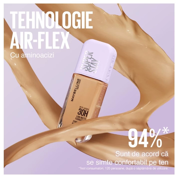 Ультралегкий тональный крем с технологией Air-Flex, сочетающий в себе воздушные пигменты, гибкую пленку и аминокислоты. Обеспечивает полное покрытие до 30 часов с матовым сияющим финишем, без тусклого вида. 91% пользователей говорят, что он легче, чем любой другой долговечный тональный крем.