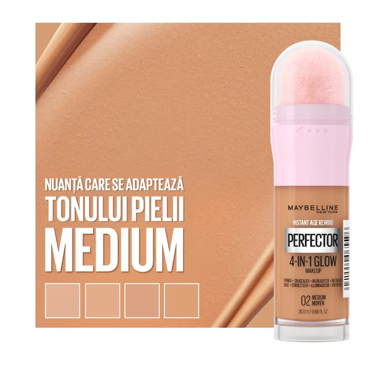 Одно нанесение, идеальное осветление с макияжем Instant Perfector 4-in-1 Glow от Maybelline New York. Instant Perfector 4-in-1 Glow разглаживает, покрывает, осветляет и идеально выравнивает кожу с помощью встроенного аппликатора-губки для еще более легкого нанесения и распределения.
