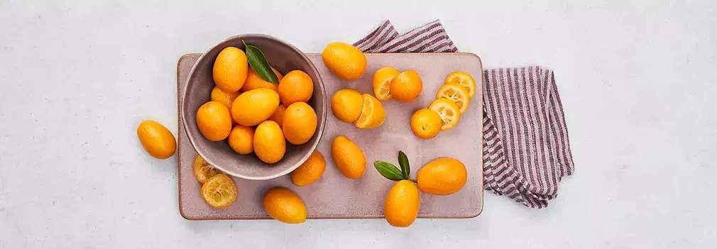 Плоды кумквата принадлежат к семейству цитрусовых и богаты витамином С. Когда фрукт слегка блестит, он достиг оптимальной спелости. Кумкваты обладают кисло-сладким вкусом, напоминающим апельсин. Они растут на небольших шипастых кустах высотой около двух метров. Эти кустарники принадлежат к семейству рутовых (Rutaceae). Плод, называемый кумкватом, имеет длину от двух до пяти сантиметров и может быть круглым, цилиндрическим или каплевидным. Кожура оранжевая или оранжево-красная и съедобная. Мякоть разделена на три-пять сегментов. Особенность этого фрукта в том, что мякоть слегка кислая, а кожура - слегка сладкая. Вкус становится идеальным, если перед употреблением фрукт слегка покатать в ладони.