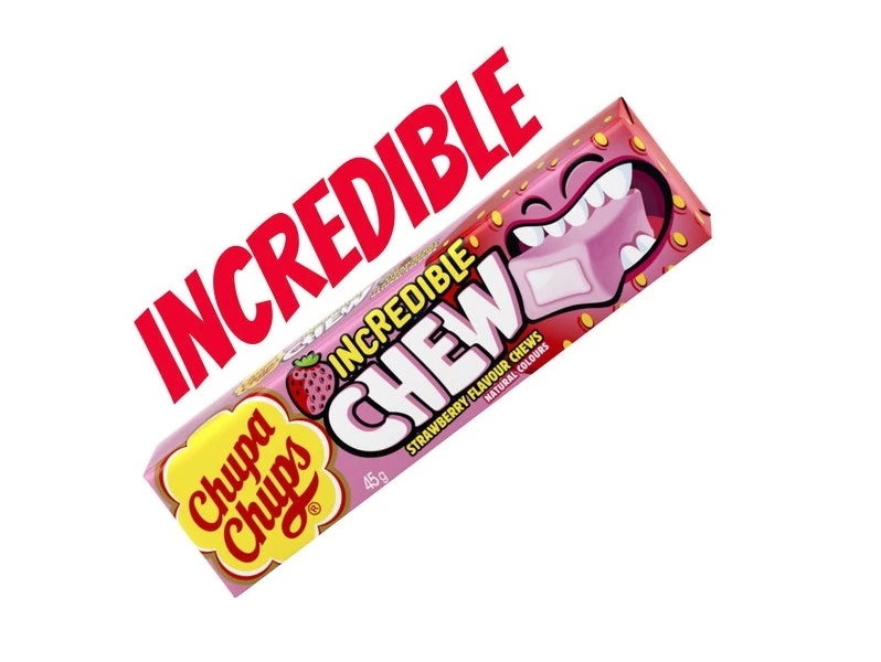 Насладитесь вкусным, продолжительным и мягким жеванием, доступным с Chupa Chups Incredible Chew.