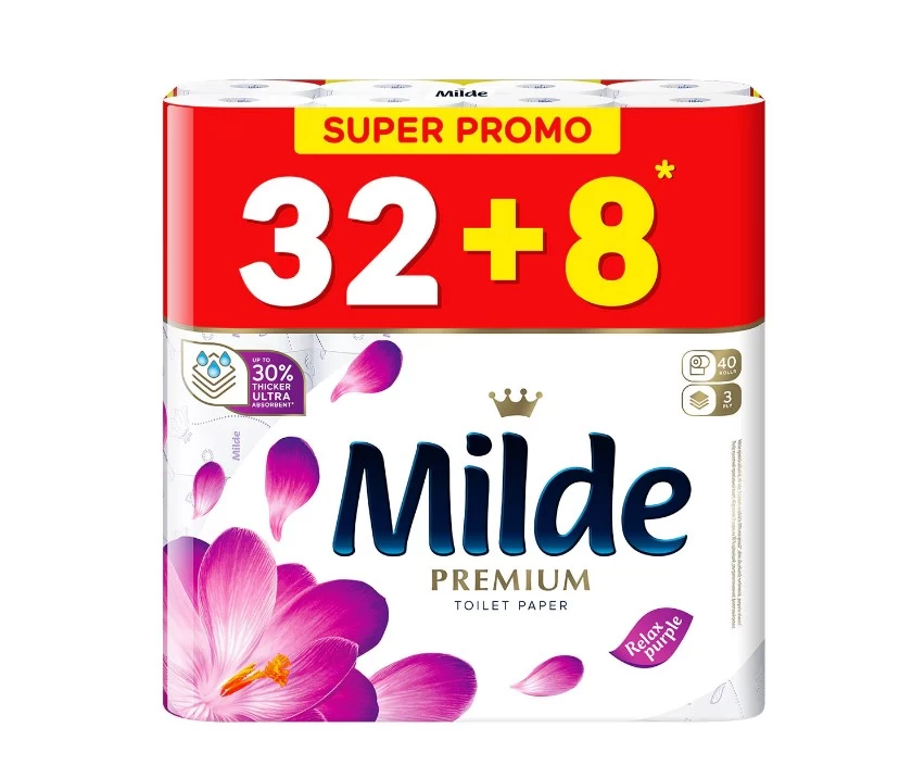 Milde Туалетная бумага 3 слоя, 32+8 рулонов Relax Purple