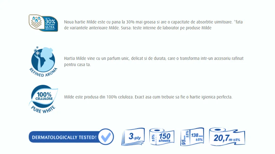 - Milde Туалетная бумага, 3 слоя, 16 рулонов Cool Blue