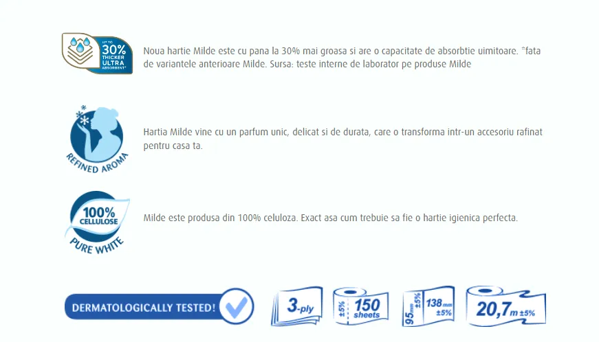 - Milde Туалетная бумага, 3 слоя, 4 рулона Cool Blue