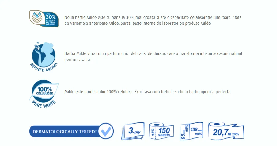 Milde Туалетная бумага, 3 слоя, 8 рулонов Cool Blue