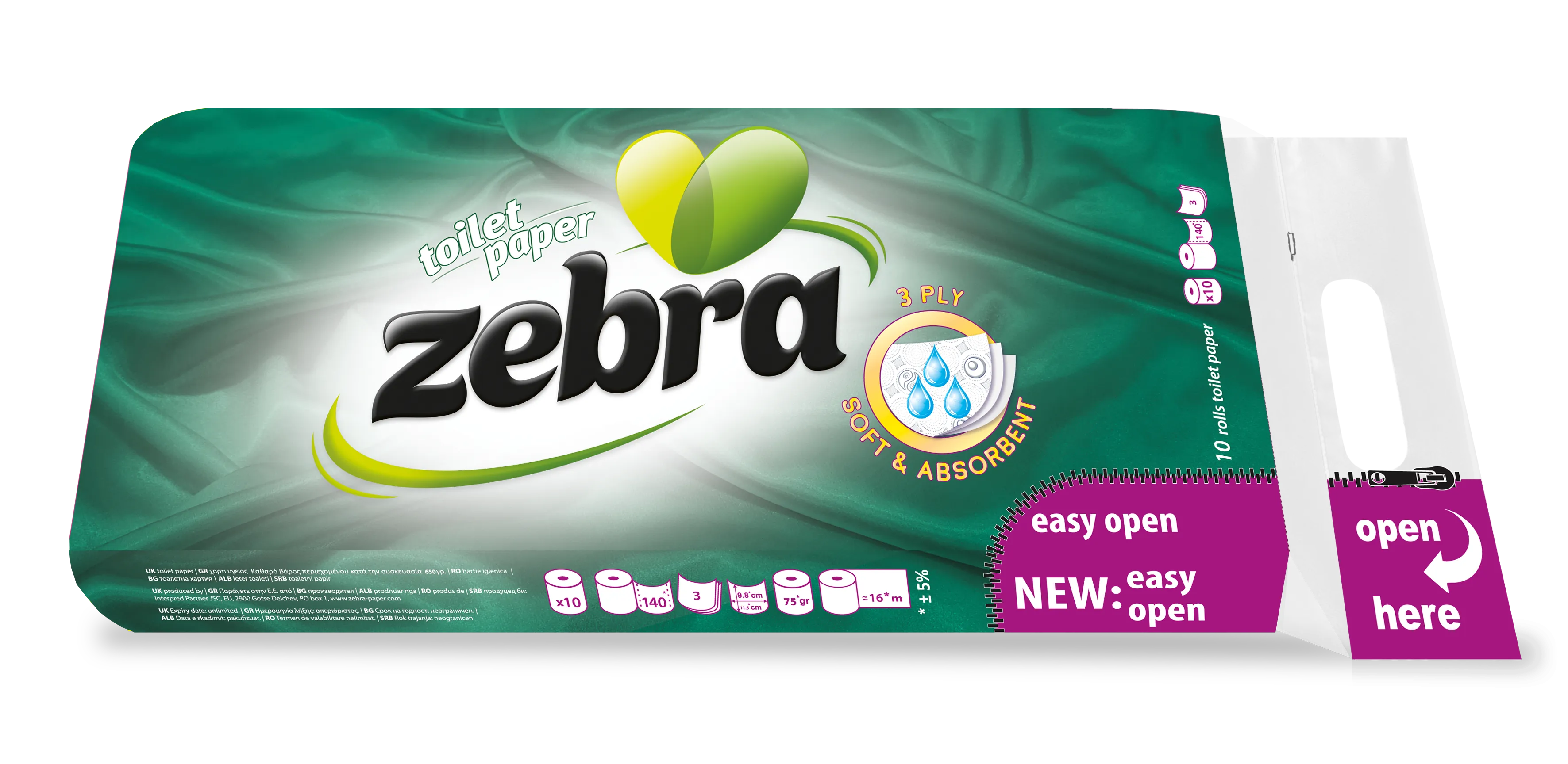 - Zebra Green Туалетная бумага 10 рул 3 слойная